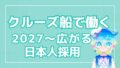 クルーになるには クルーズ船×仕事|海外で働く夢を叶える!2027年以降に広がる日本人採用チャンス はじめに:クルーズ船で働くってアリかも🔥「英語を使って海外で働きたい」「旅行しながら収入を得たい」と考えたことはありませ... 2025.09.23 クルーになるには